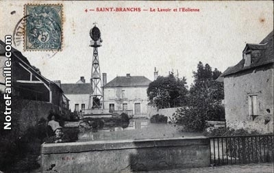 MONUMENT AUX MORTS 1921 Sculpteur : Gautier Rembaux Si la plupart des communes d’Indre-et-Loire ont choisi des colonnes ou des obélisques pour honorer leurs morts, la municipalité de Saint-Branchs a érigé un monument à statue. Elle a choisi le thème de la fin du combat. La statue représente un Poilu remettant sa baïonnette dans son fourreau d’un air satisfait, avec ces paroles : « on les a eus ». Dans un premier temps, ce monument était érigé devant la pharmacie (actuellement l’agence immobilière). En 2006, il a été déplacé pour être placé derrière la mairie.